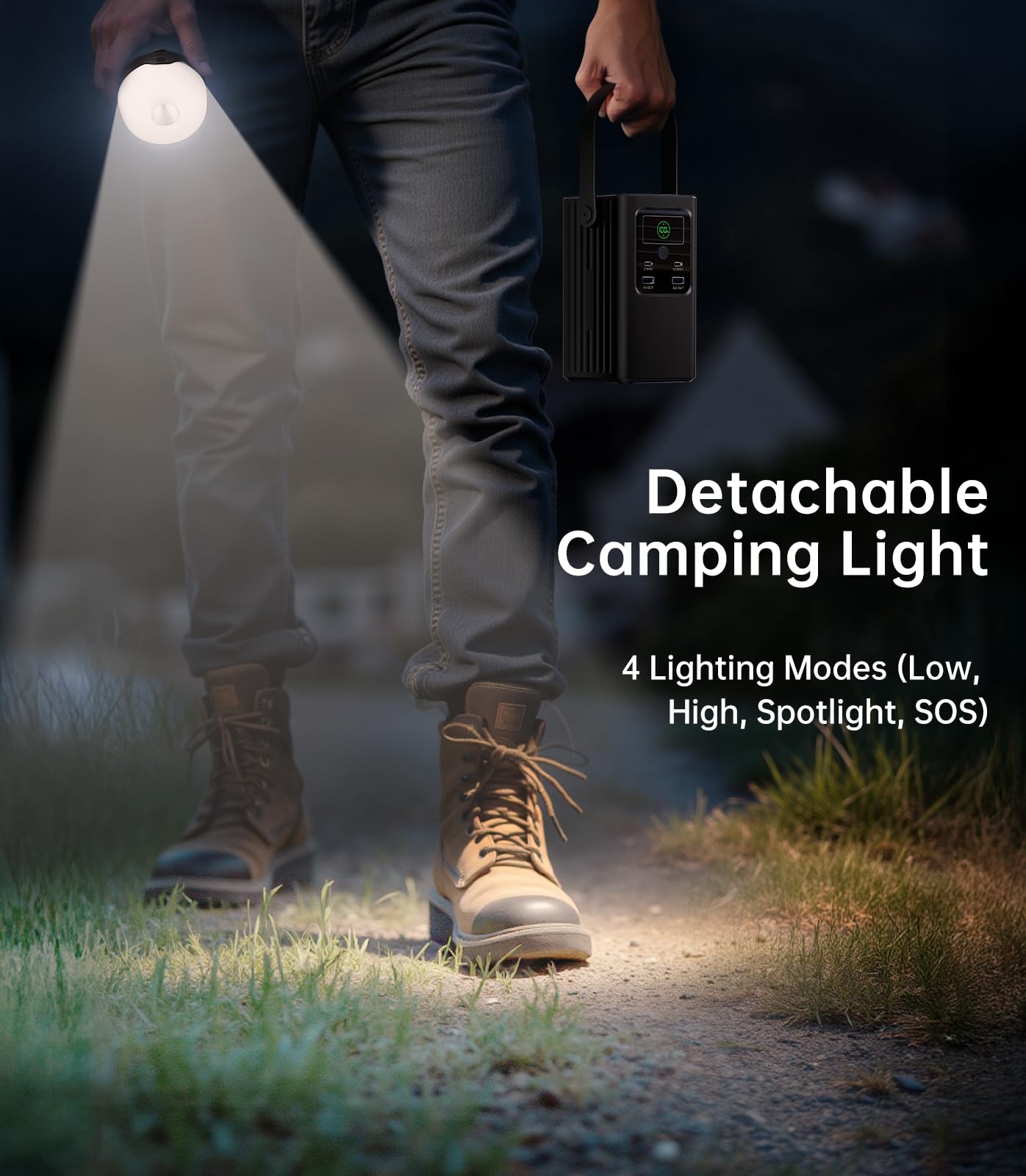 Camping Portable Power Station 198.4Wh, [4-Port Fast Charging] LiFePO4 Battery Power Bank Small Electric Generator with Detachable Light, 100W USB-C Output for Home Backup Outdoor Emergency